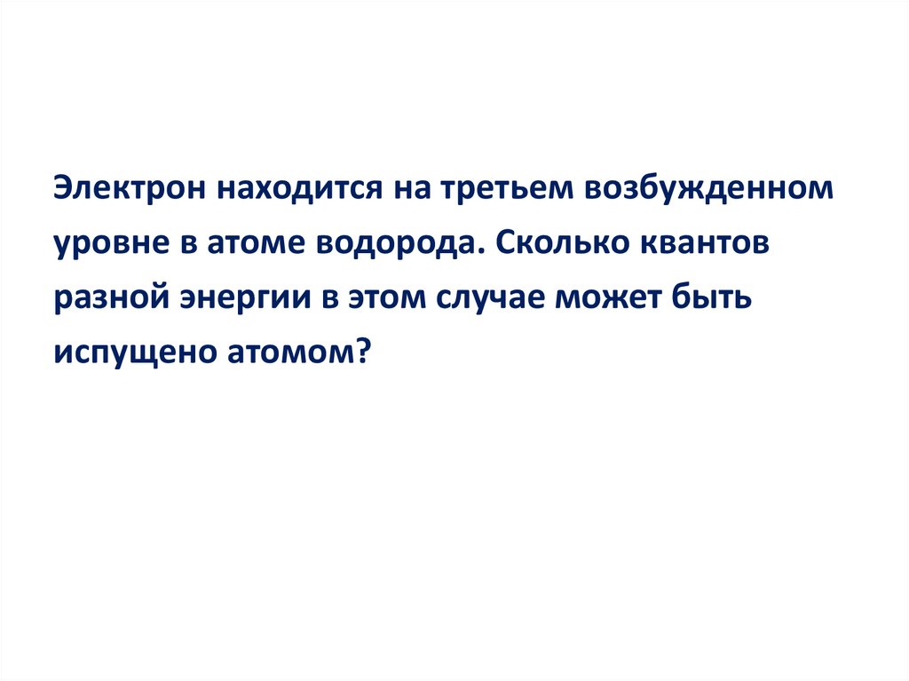 Электрон находится на третьем возбужденномуровне в атоме водорода. Сколько квантов