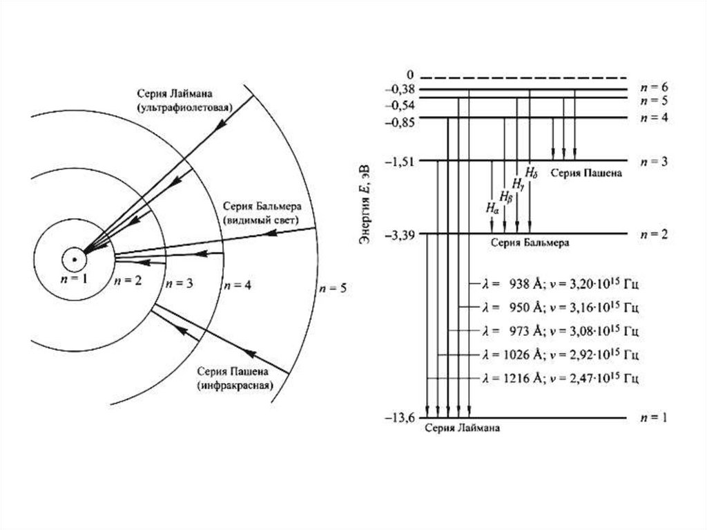 Ответ 524. ЦТ-13 На диаграмме показаны переходы атома водорода между различными энергетическими состояниями. Излучение с наименьшей длиной