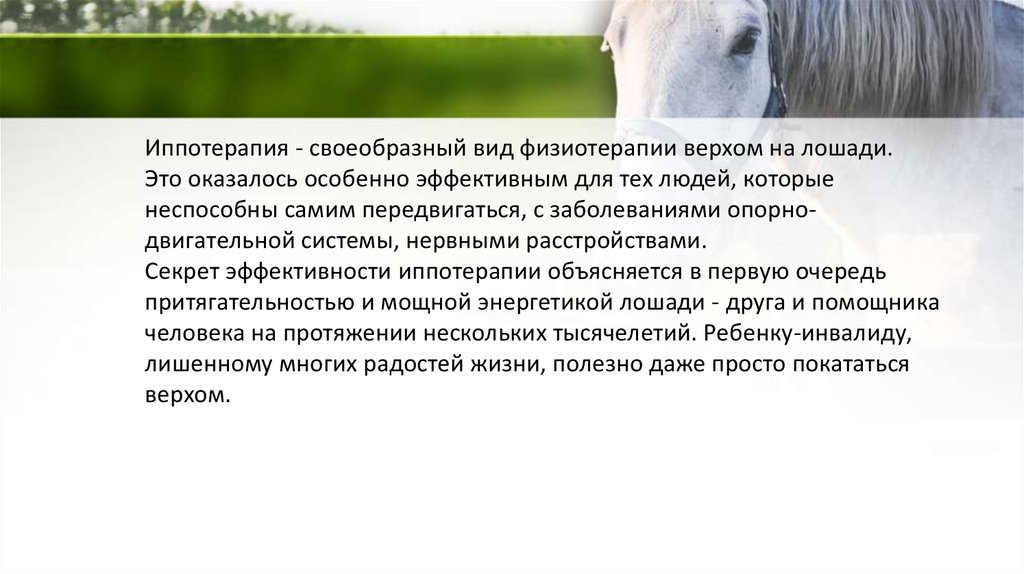 «hippos» - конь) - лечебная верховая езда. Но