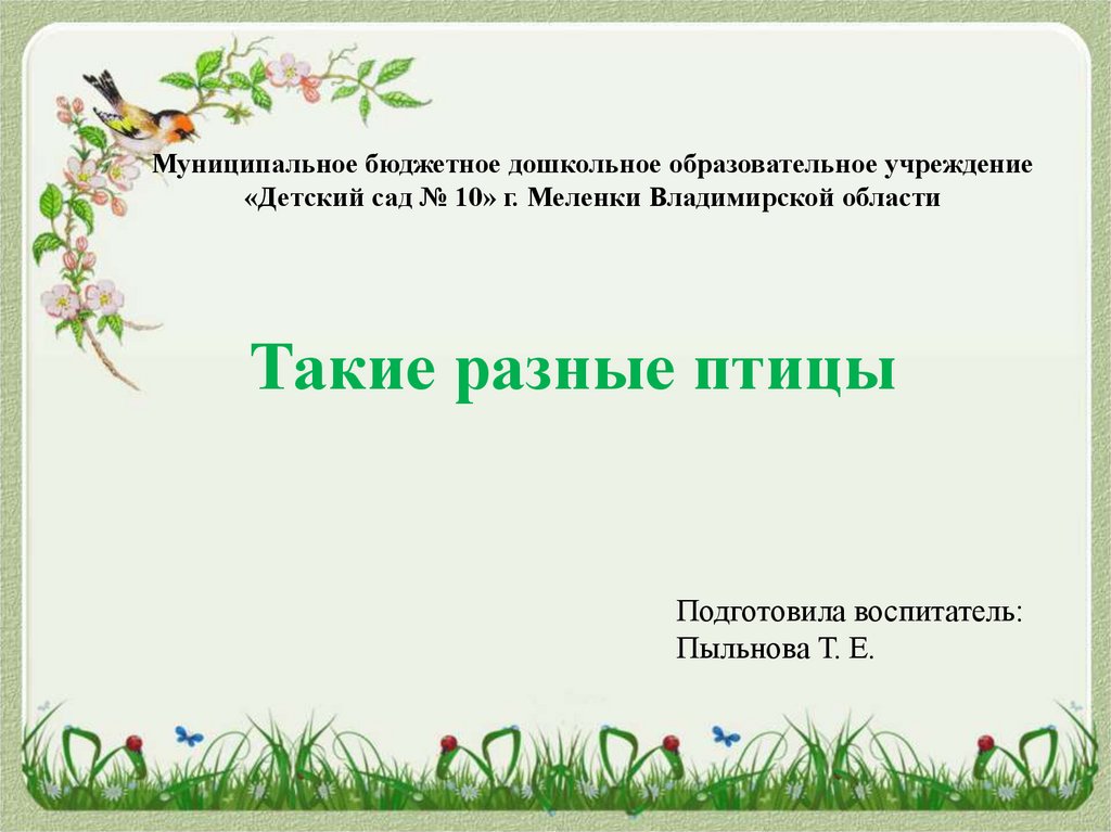 1. Муниципальное бюджетное дошкольное образовательное учреждение «Детский сад № 10» г. Меленки Владимирской области