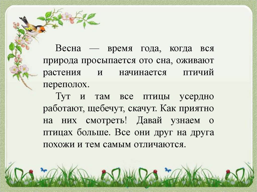 Весна — время года, когда всяприрода просыпается ото сна, оживают