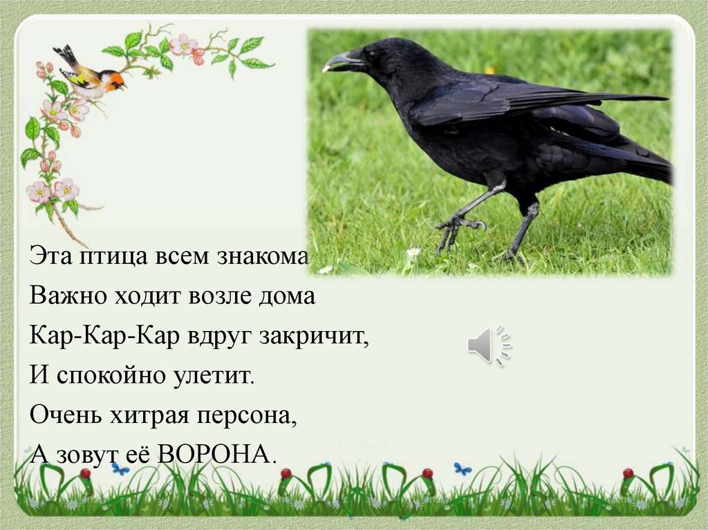 Эта птица всем знакома Важно ходит возле домаКар-Кар-Кар вдруг закричит,