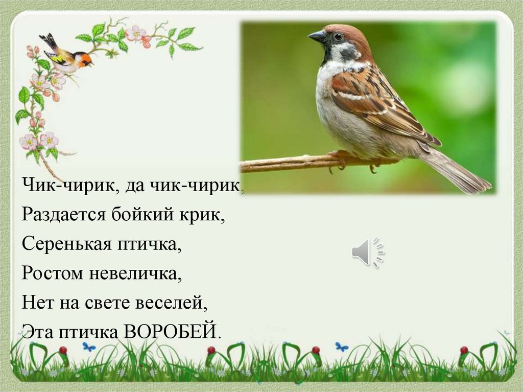 Чик-чирик, да чик-чирик,Раздается бойкий крик,