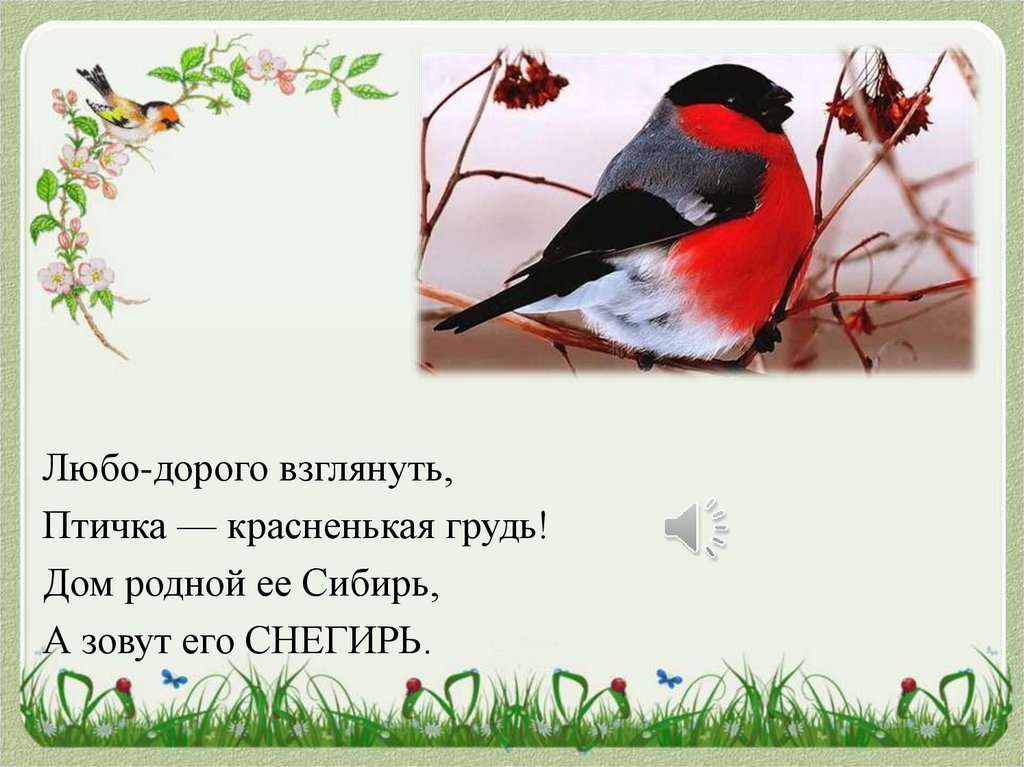 Любо-дорого взглянуть,Птичка — красненькая грудь!