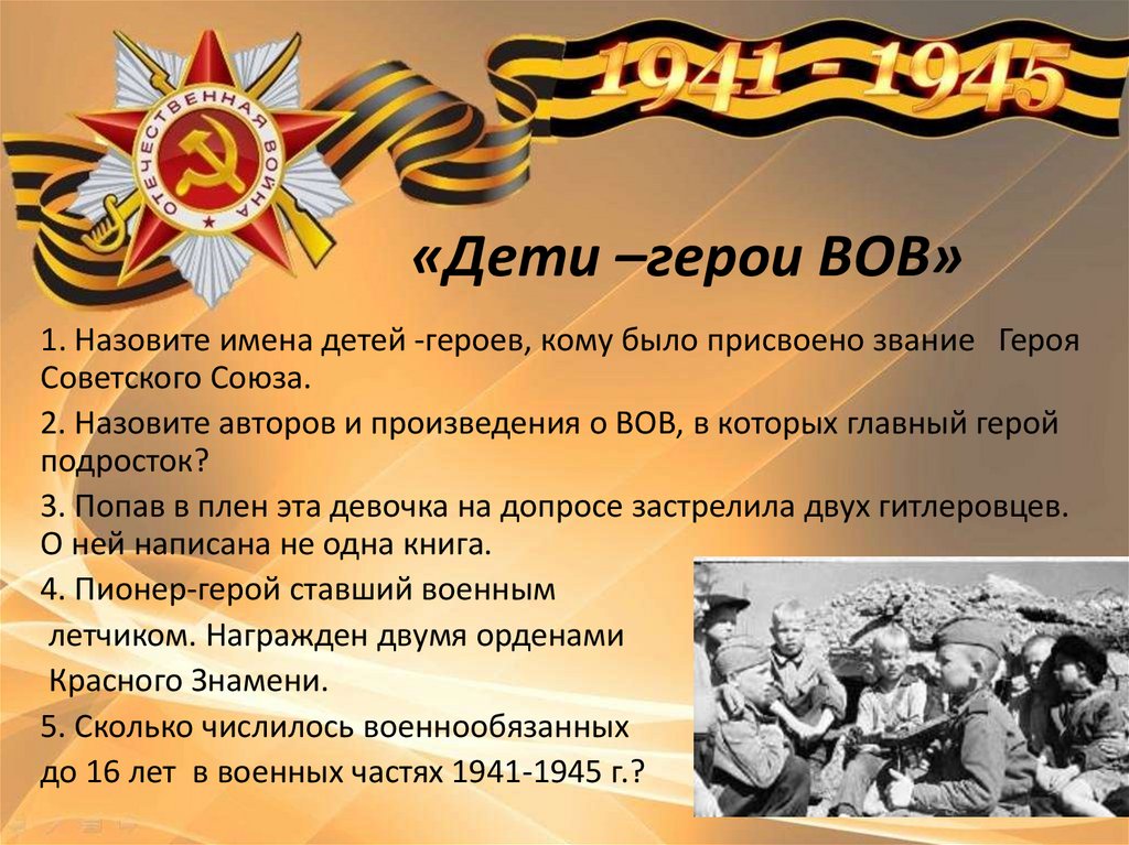 «Дети –герои ВОВ»1. Назовите имена детей -героев, кому было присвоено звание Героя