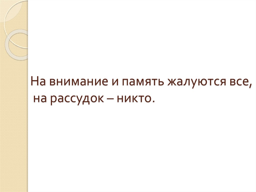 1. На внимание и память жалуются все, на рассудок – никто.