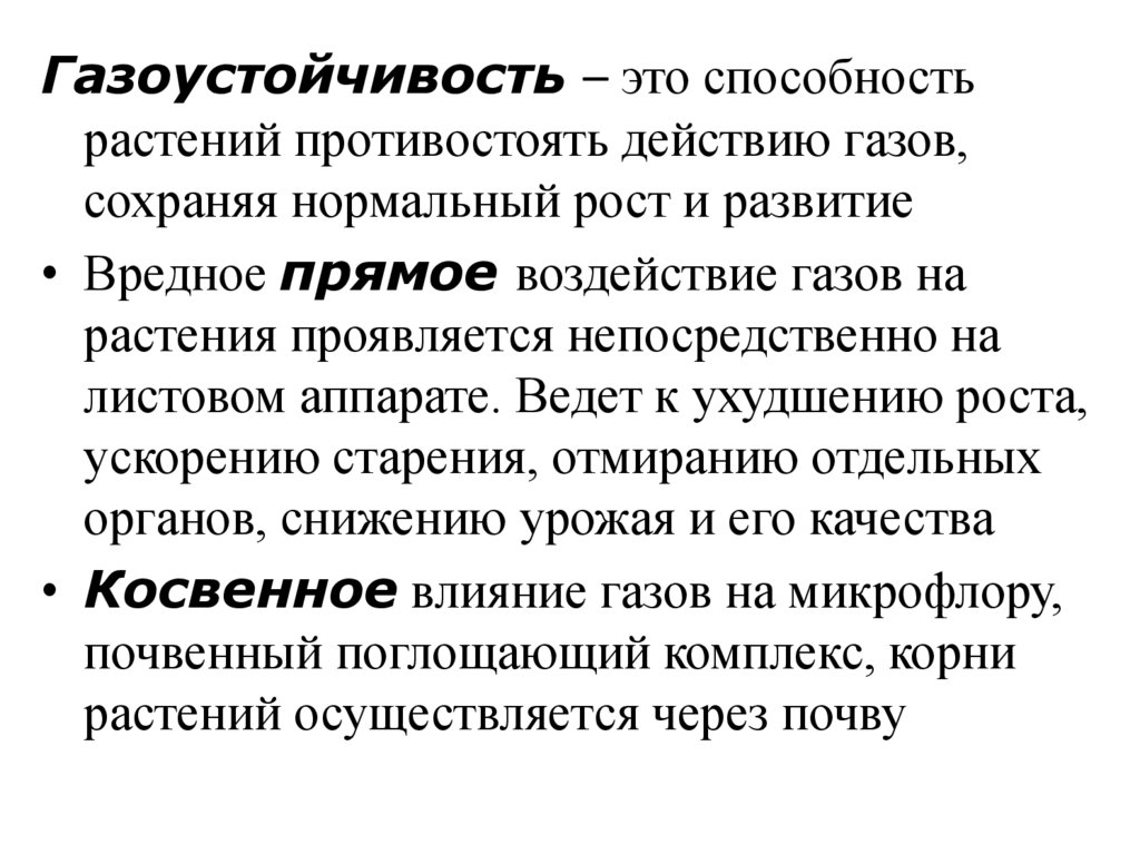 1. Устойчивость растений к действию вредных веществ атмосферы