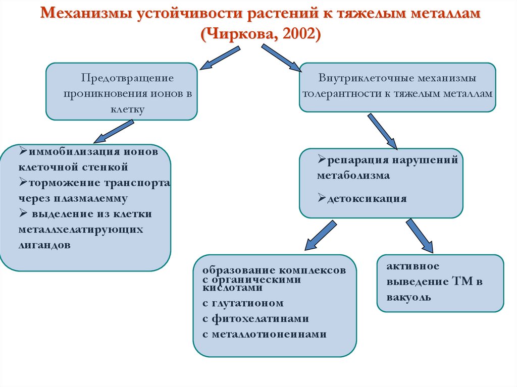Механизмы устойчивости растений к тяжелым металлам(Чиркова, 2002)