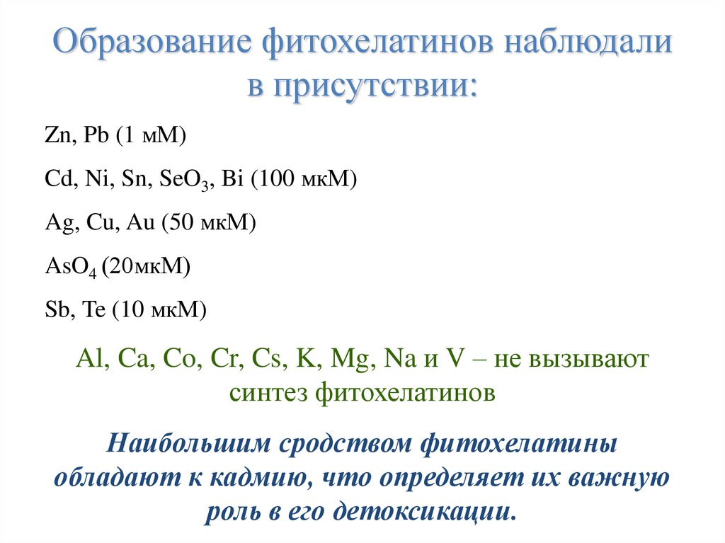 Образование фитохелатинов наблюдалив присутствии: