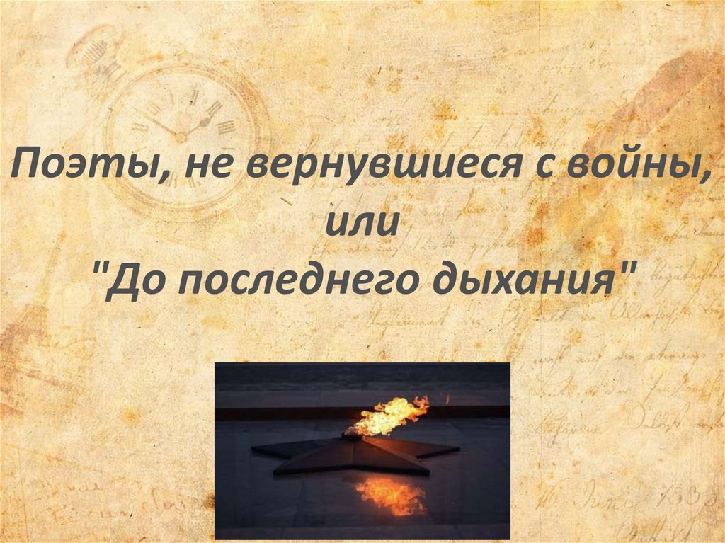 Поэты, не вернувшиеся с войны, или "До последнего дыхания"