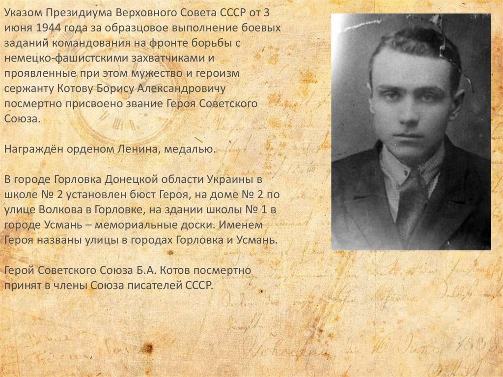 армия, Воронежский фронт) сержант Борис Котов в ночь на 27 сентября 1943 года в