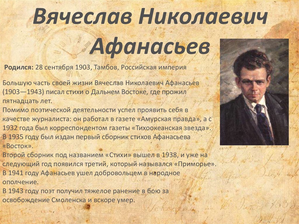 (1903—1943) писал стихи о Дальнем Востоке, где прожил