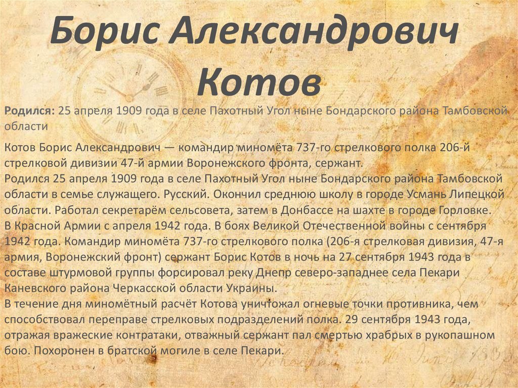 Котов Борис Александрович — командир миномёта 737-го стрелкового полка 206-й