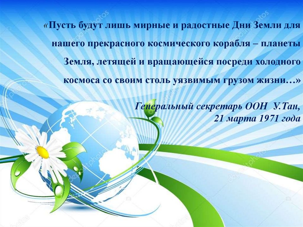 «Пусть будут лишь мирные и радостные Дни Земли длянашего прекрасного космического корабля – планеты