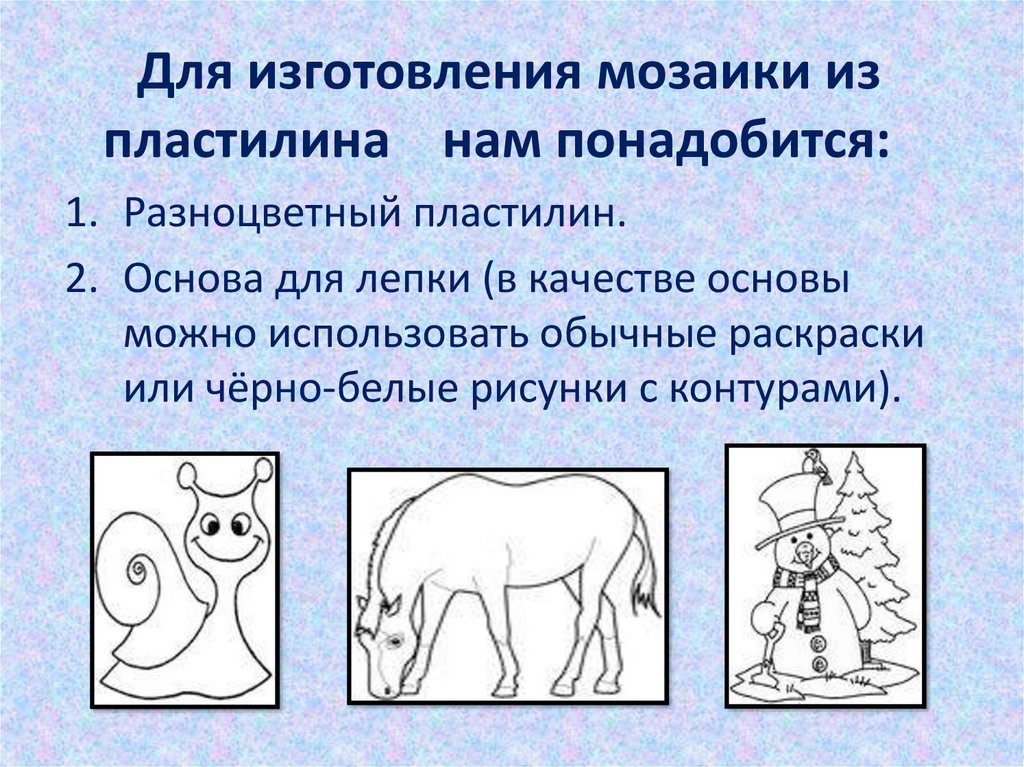 Для изготовления мозаики изпластилина нам понадобится: