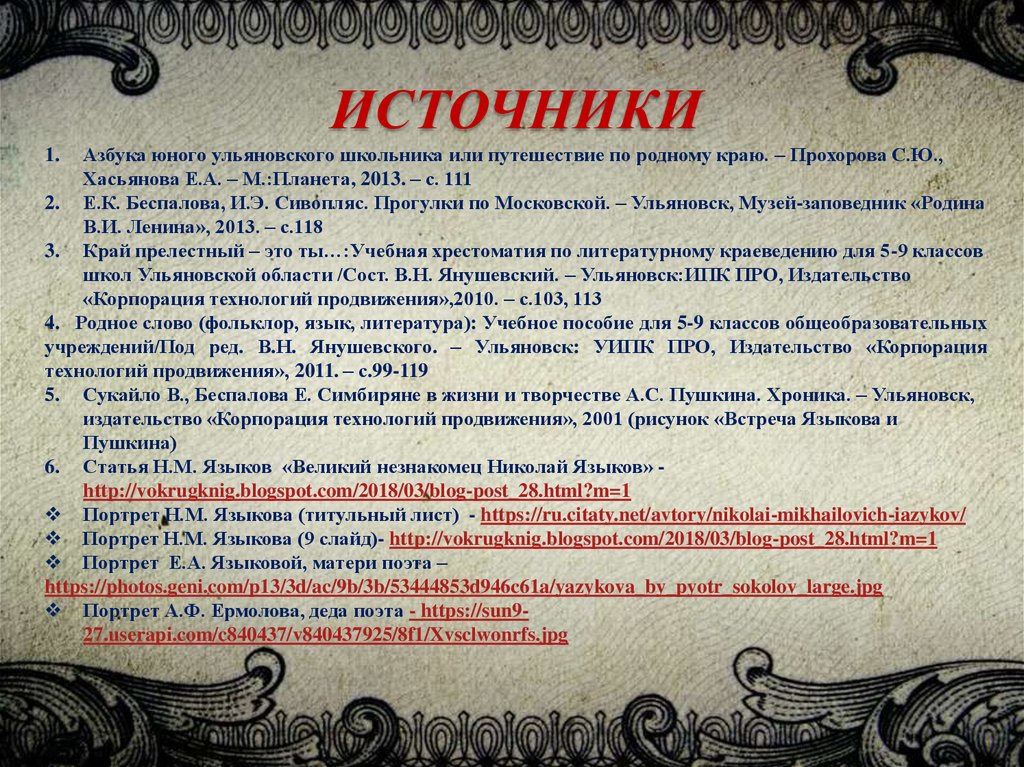 6. Статья Н.М. Языков «Великий незнакомец Николай Языков» http://vokrugknig.blogspot.com/2018/03/blog-post_28.html?m=1