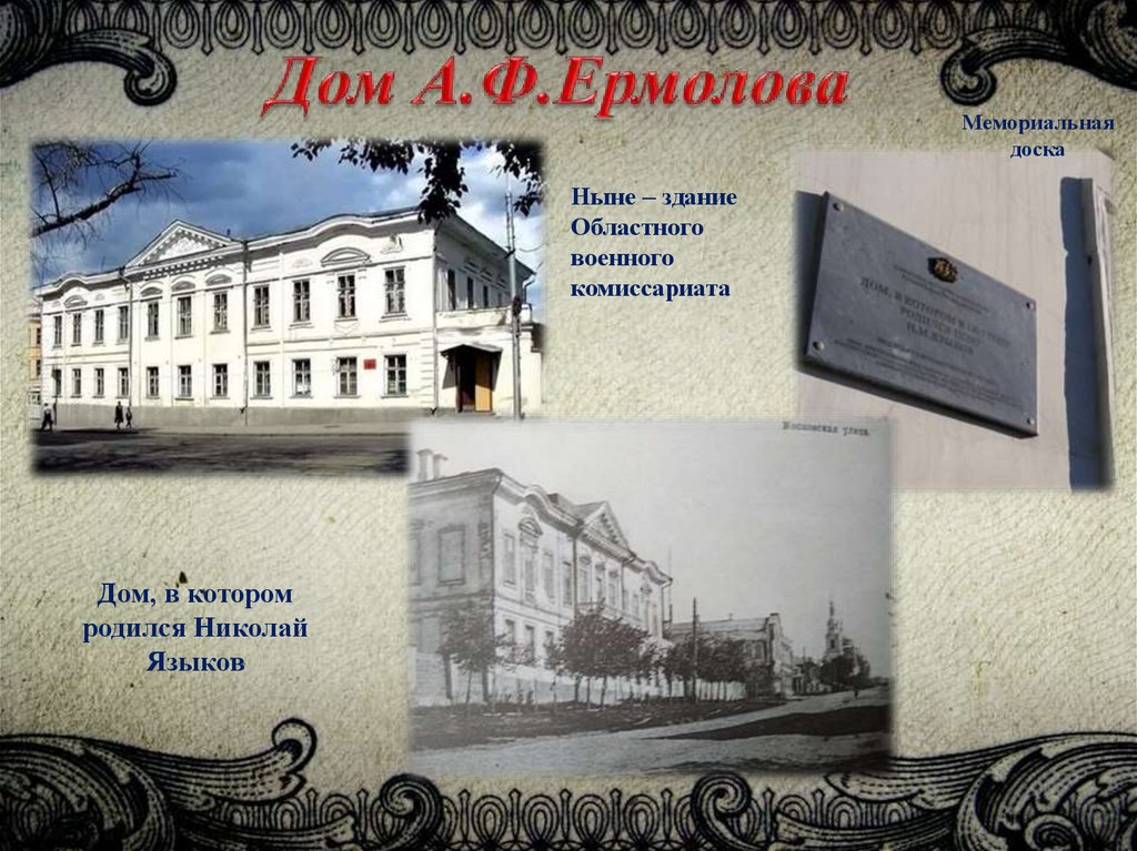Фотография дома А.Ф. Ермолова (современный вид) –