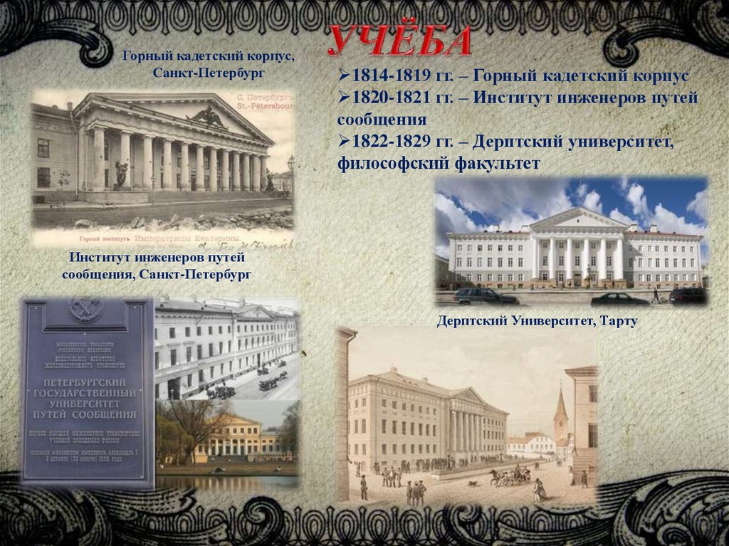 Фотография Горного кадетского корпуса –http://dimitri.moseparh.ru/files/2019/11/IMG_6705.jpgФотография Института путей сообщений – https://news.myseldon.com/ru/news/index/207478373