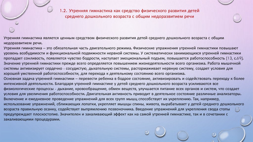 1.2. Утренняя гимнастика как средство физического развития детейсреднего дошкольного возраста с общим недоразвитием речи