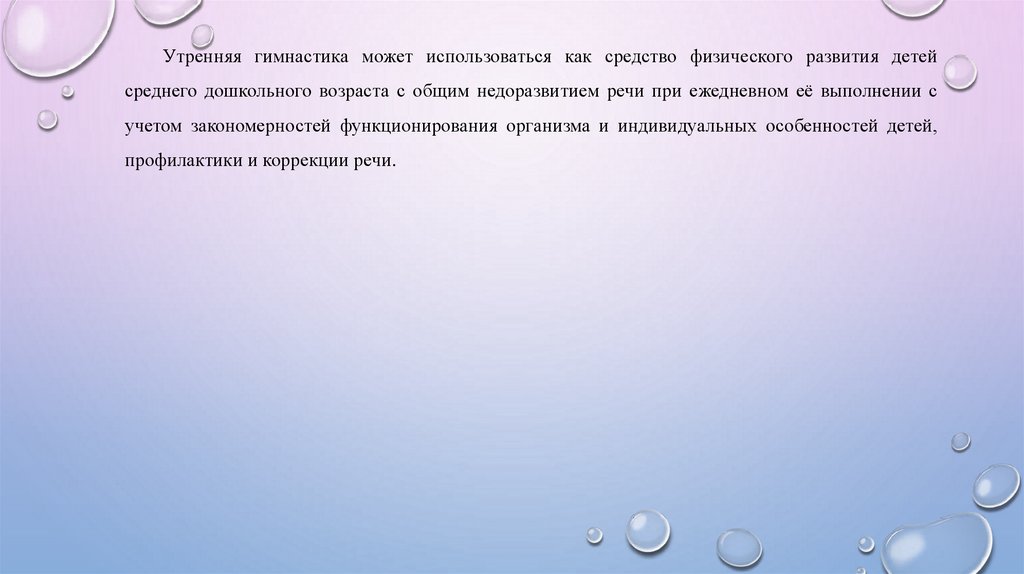 Утренняя гимнастика может использоваться как средство физического развития детейсреднего дошкольного возраста с общим недоразвитием речи при ежедневном её выполнении с