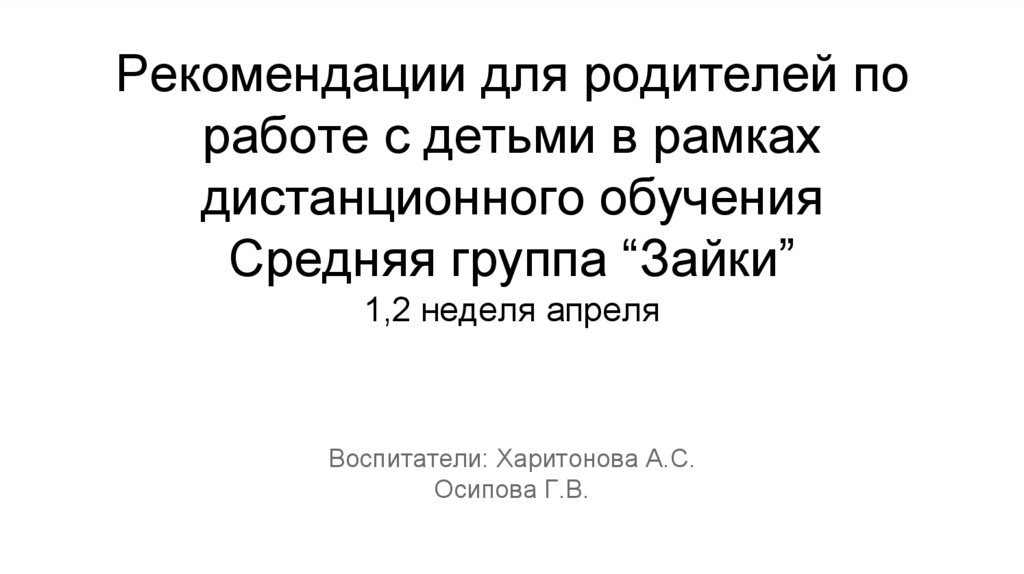 Рекомендации для родителей по работе с детьми в рамках дистанционного обучения Средняя группа “Зайки”