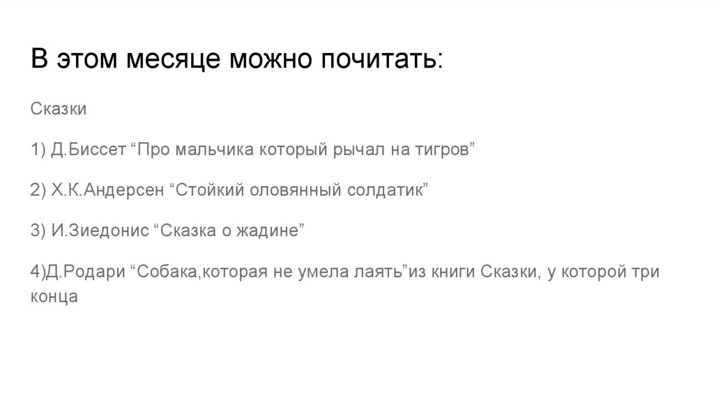 В этом месяце можно почитать:Сказки