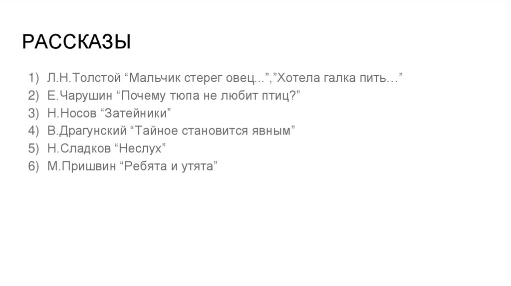 Л.Н.Толстой “Мальчик стерег овец...”,”Хотела галка пить…”