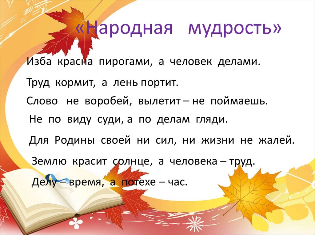 «Народная мудрость»Изба красна пирогами, а человек делами.