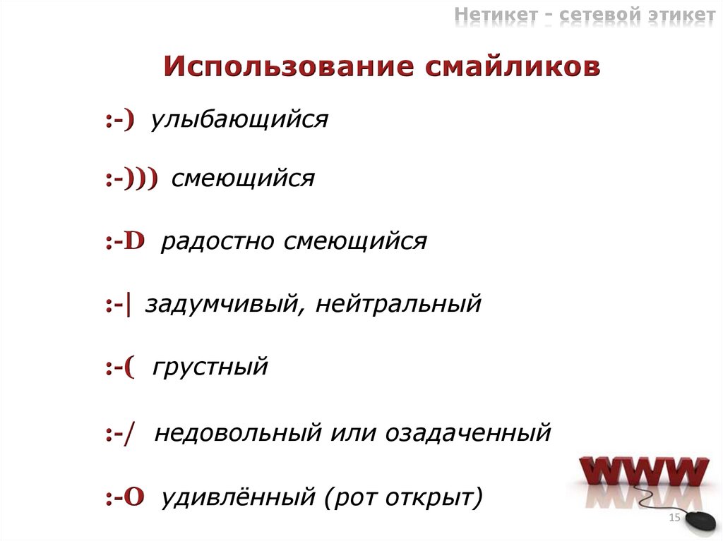 Нетикет - сетевой этикетИспользование смайликов