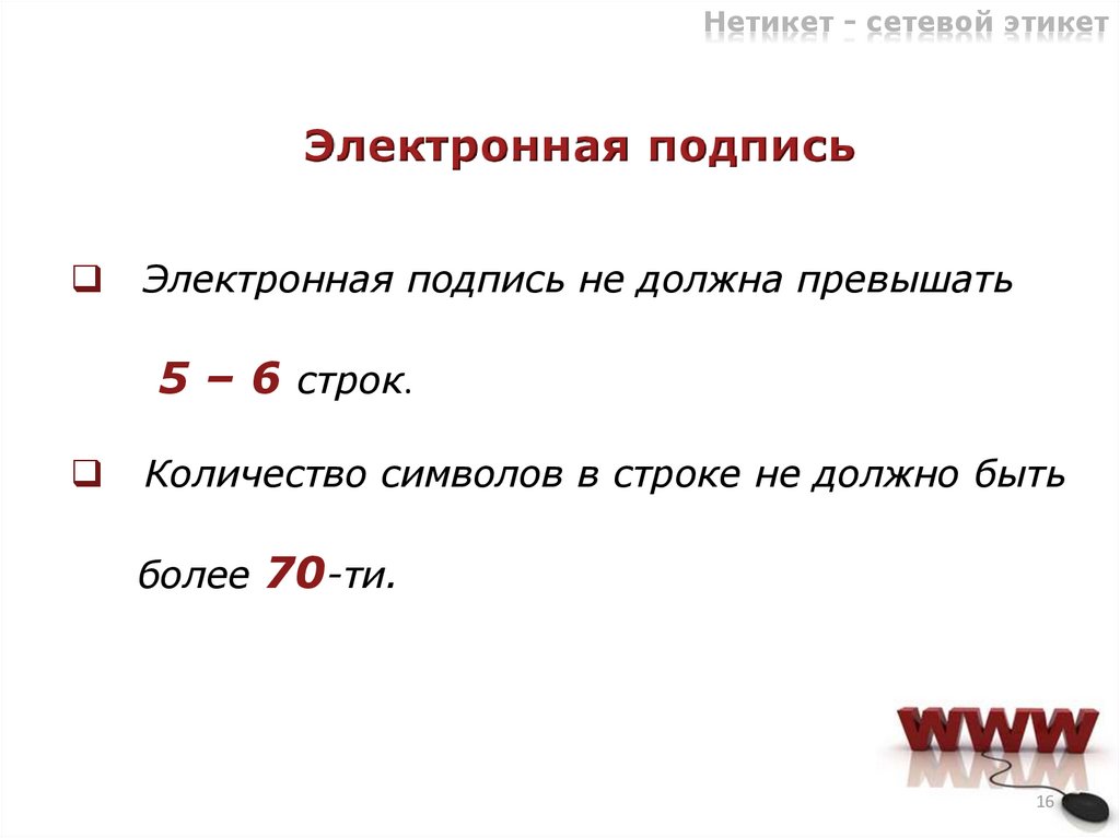 Нетикет - сетевой этикетЭлектронная подпись