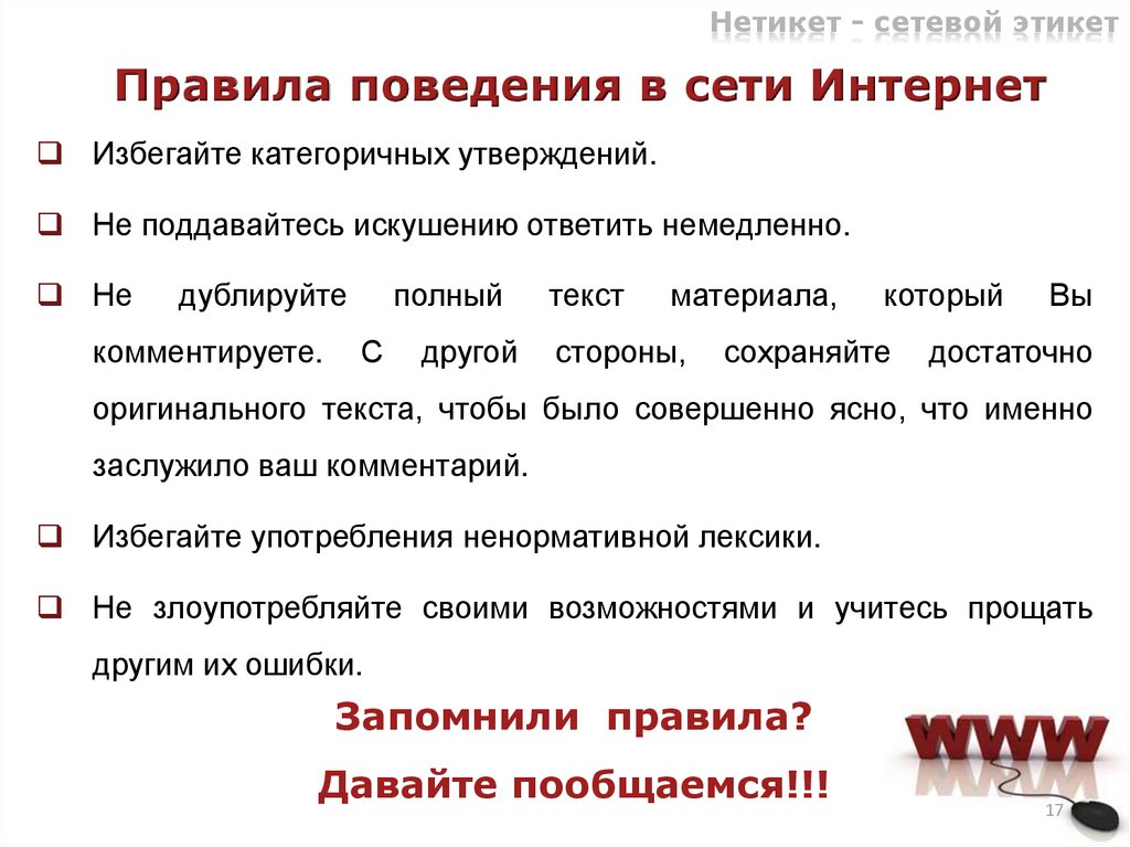 Нетикет - сетевой этикетПравила нетикета