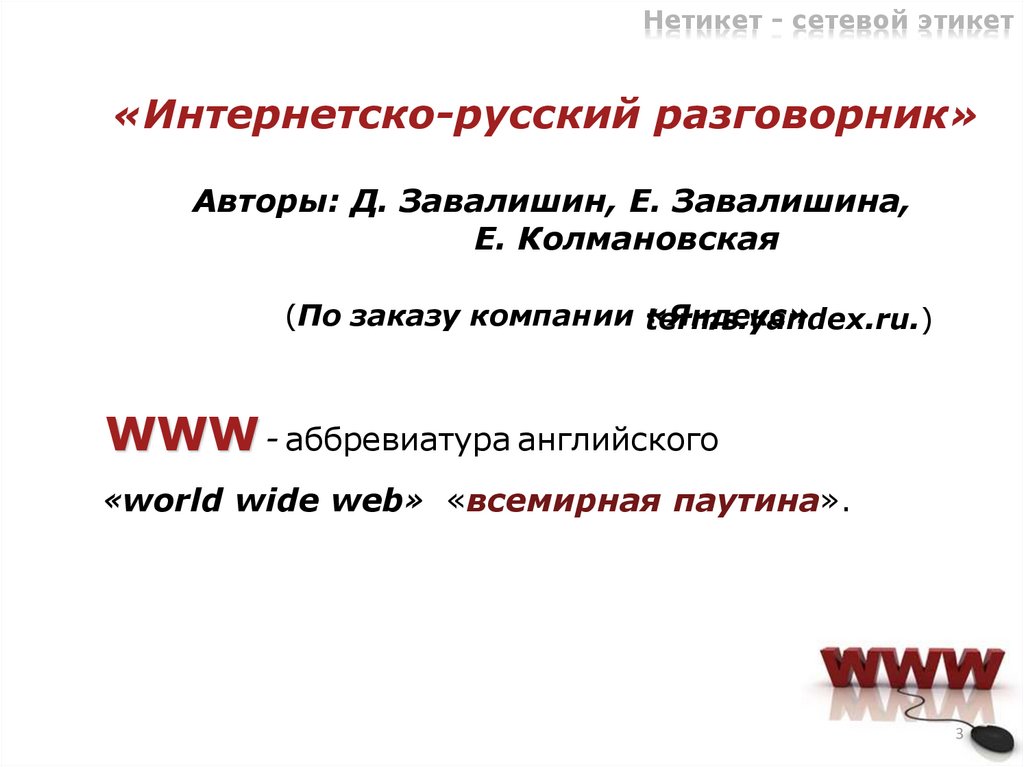 Нетикет - сетевой этикет«Интернетско-русский разговорник»