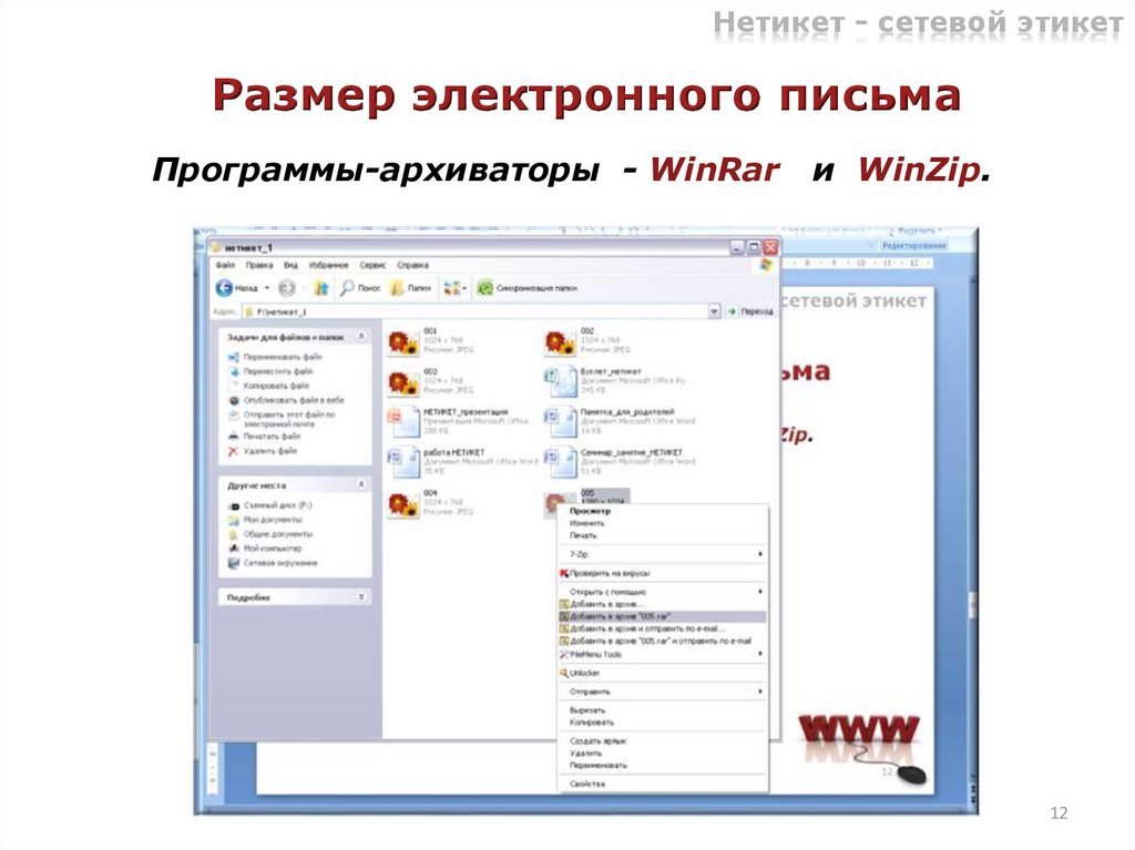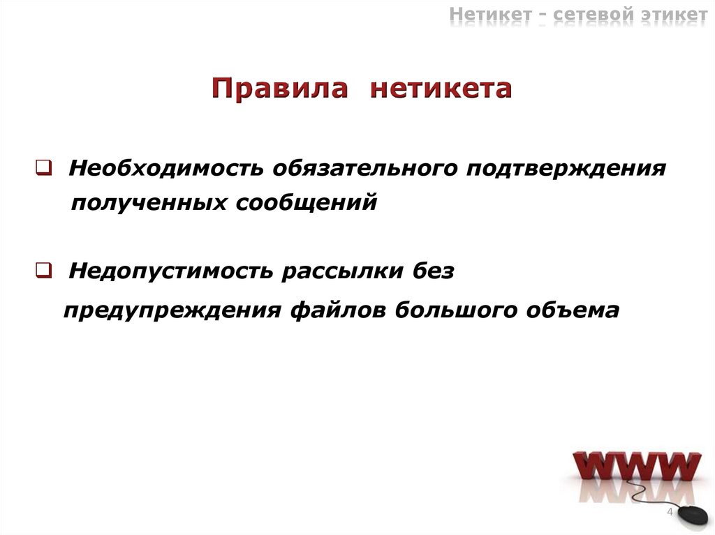 Нетикет - сетевой этикетРазмер электронного письма