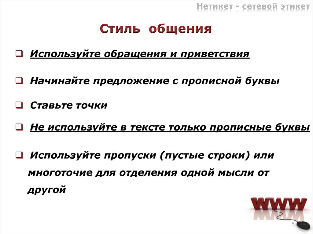 Нетикет - сетевой этикетСтиль общения