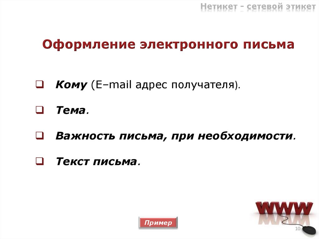 Нетикет - сетевой этикетОформление электронного письма