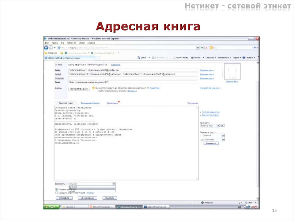 Нетикет - сетевой этикетАдресная книга