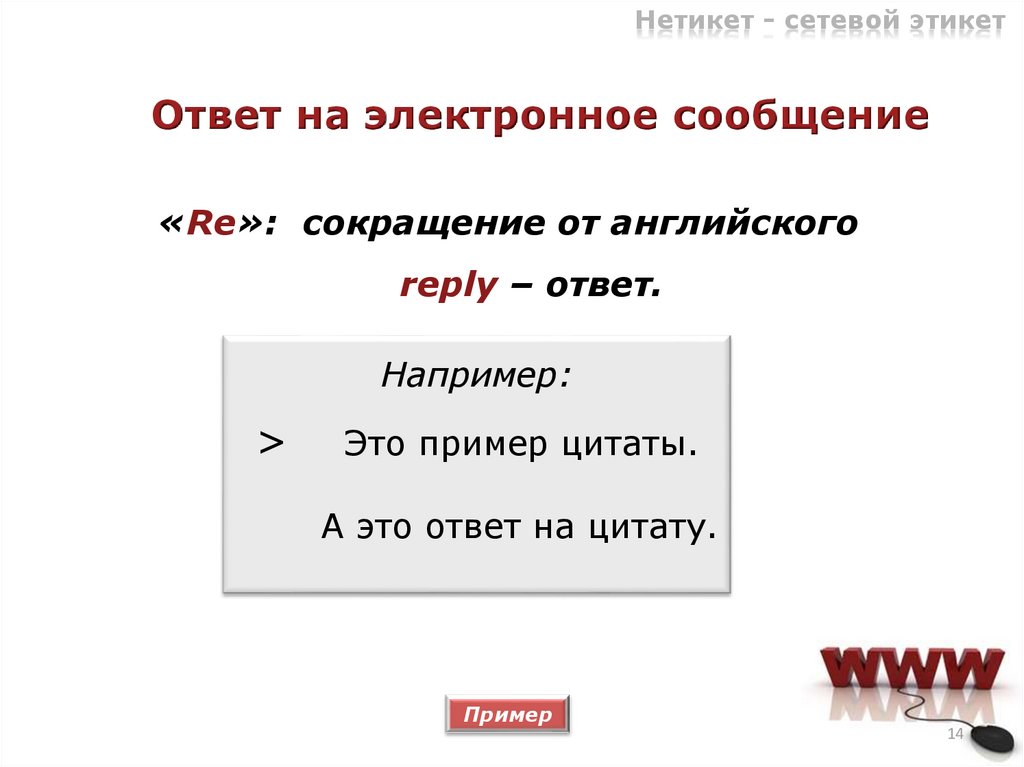 Нетикет - сетевой этикетОтвет на электронное сообщение