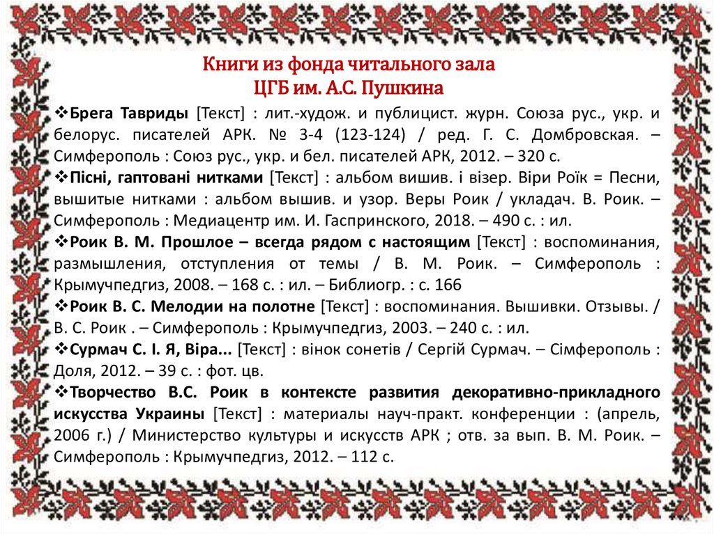 вышитые нитками : альбом вышив. и узор. Веры Роик / укладач. В. Роик. –