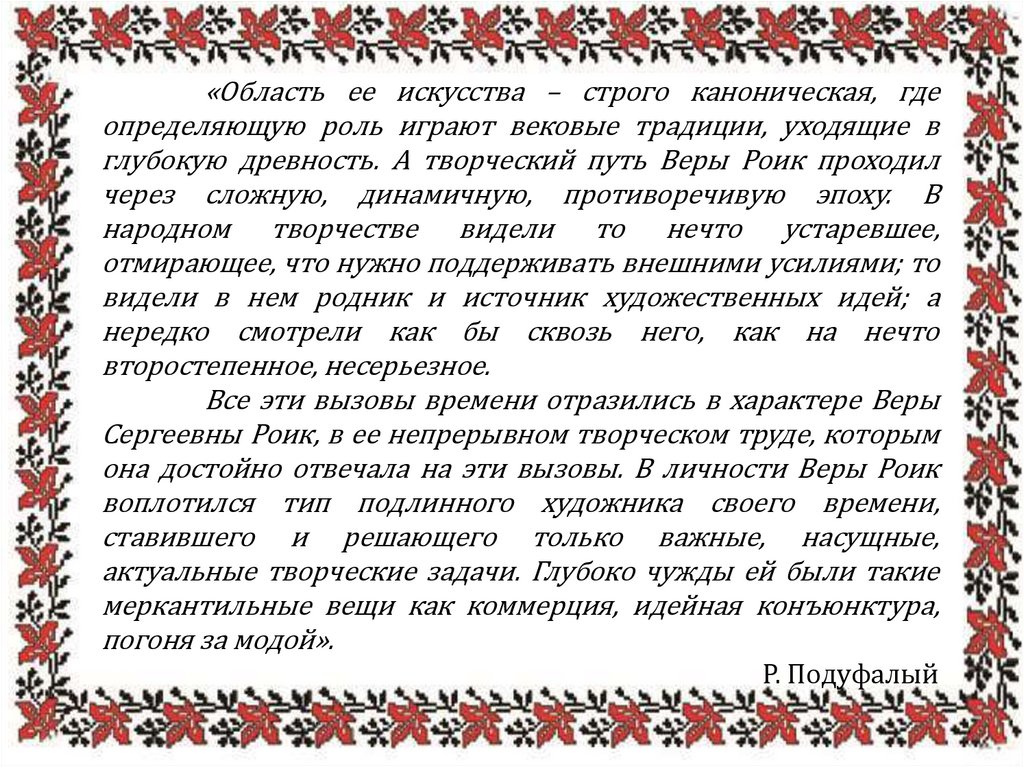Творчество В.С. Роик в контексте развития декоративно-прикладного