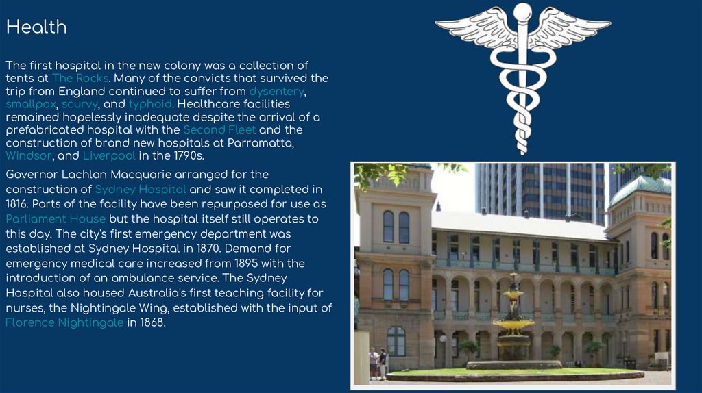 smallpox, scurvy, and typhoid. Healthcare facilities