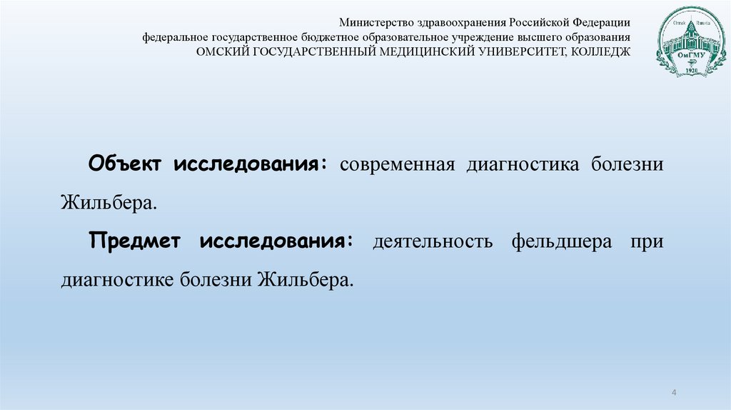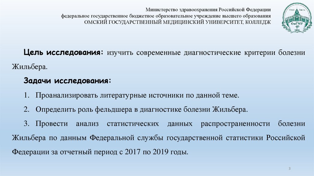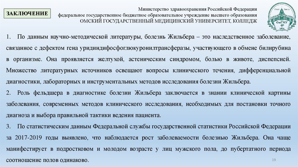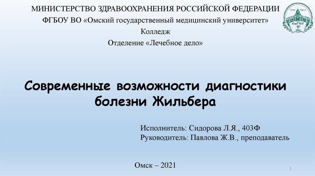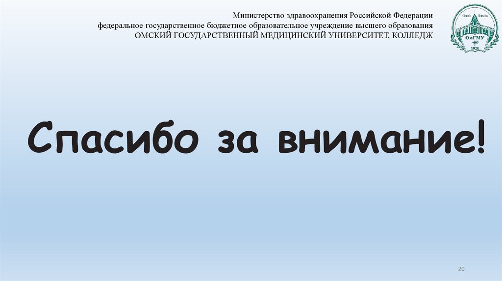 МИНИСТЕРСТВО ЗДРАВООХРАНЕНИЯ РОССИЙСКОЙ ФЕДЕРАЦИИФГБОУ ВО «Омский государственный медицинский университет»