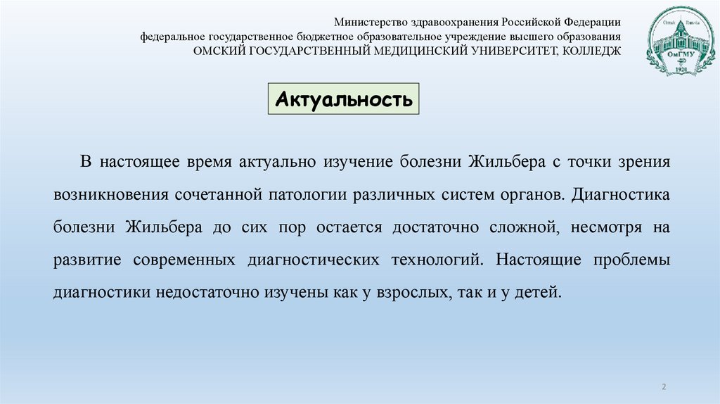 В настоящее время актуально изучение болезни Жильбера с точки зрения