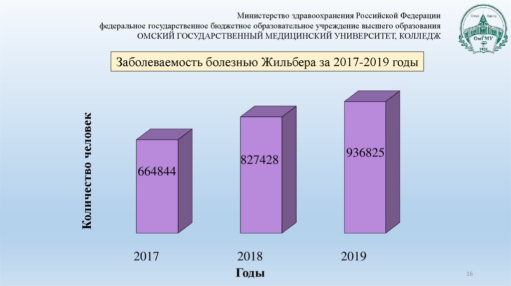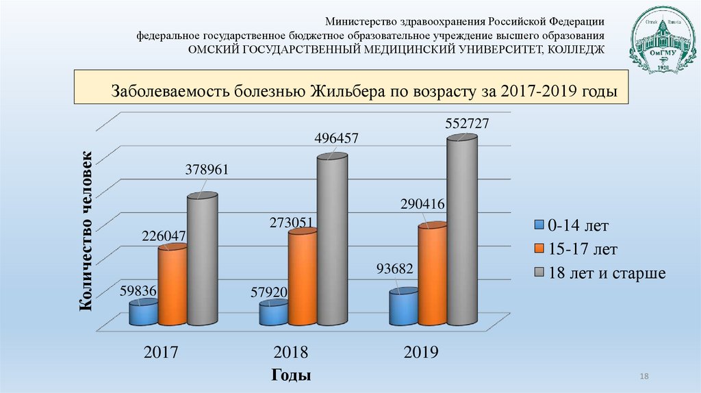 за 2017-2019 годы выявлено, что наблюдается рост заболеваемости болезнью Жильбера. Она чаще