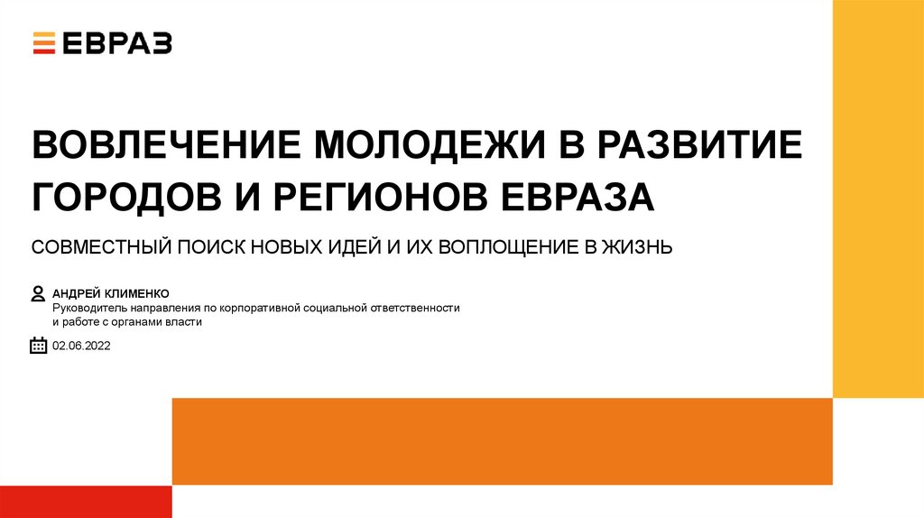 1. ВОВЛЕЧЕНИЕ МОЛОДЕЖИ В РАЗВИТИЕ ГОРОДОВ И РЕГИОНОВ ЕВРАЗА
