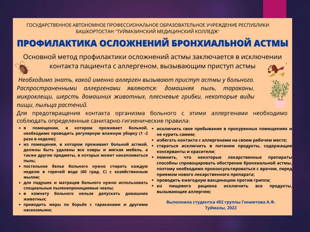 бронхиальной астмой в профилактике