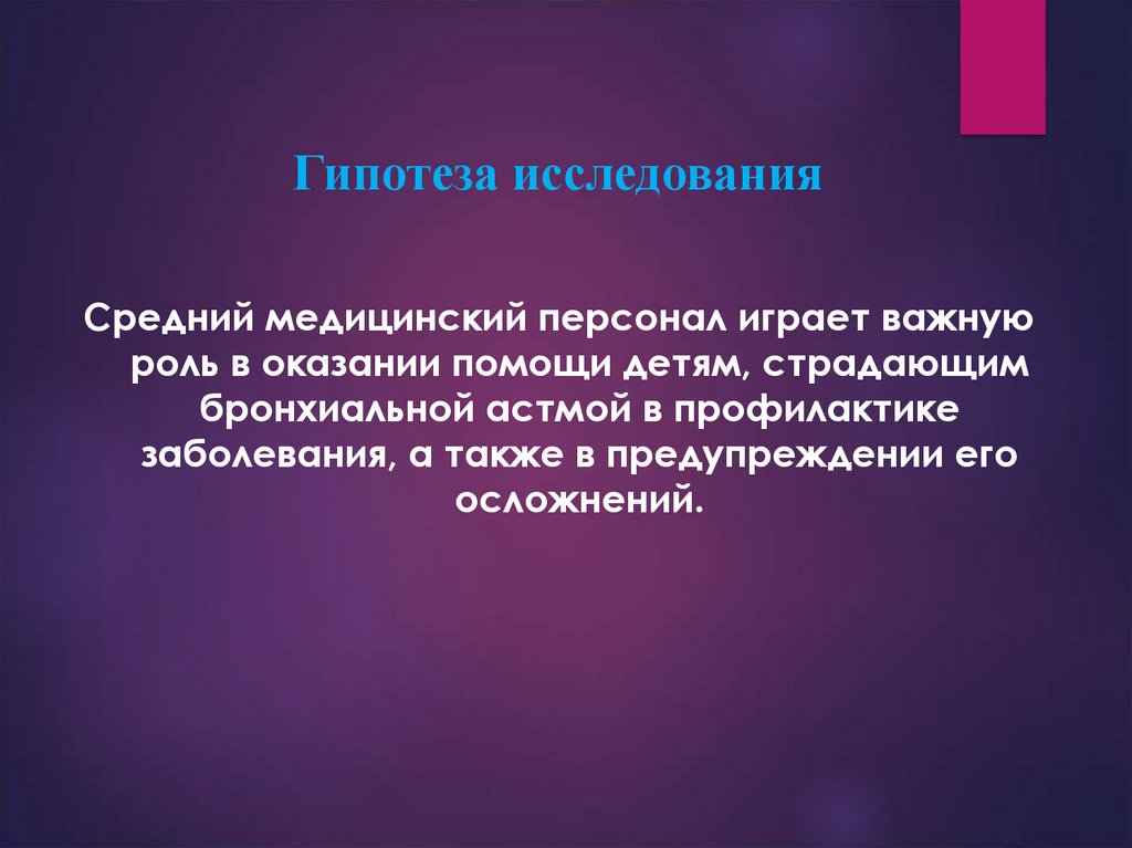 Гипотеза исследованияСредний медицинский персонал играет важную