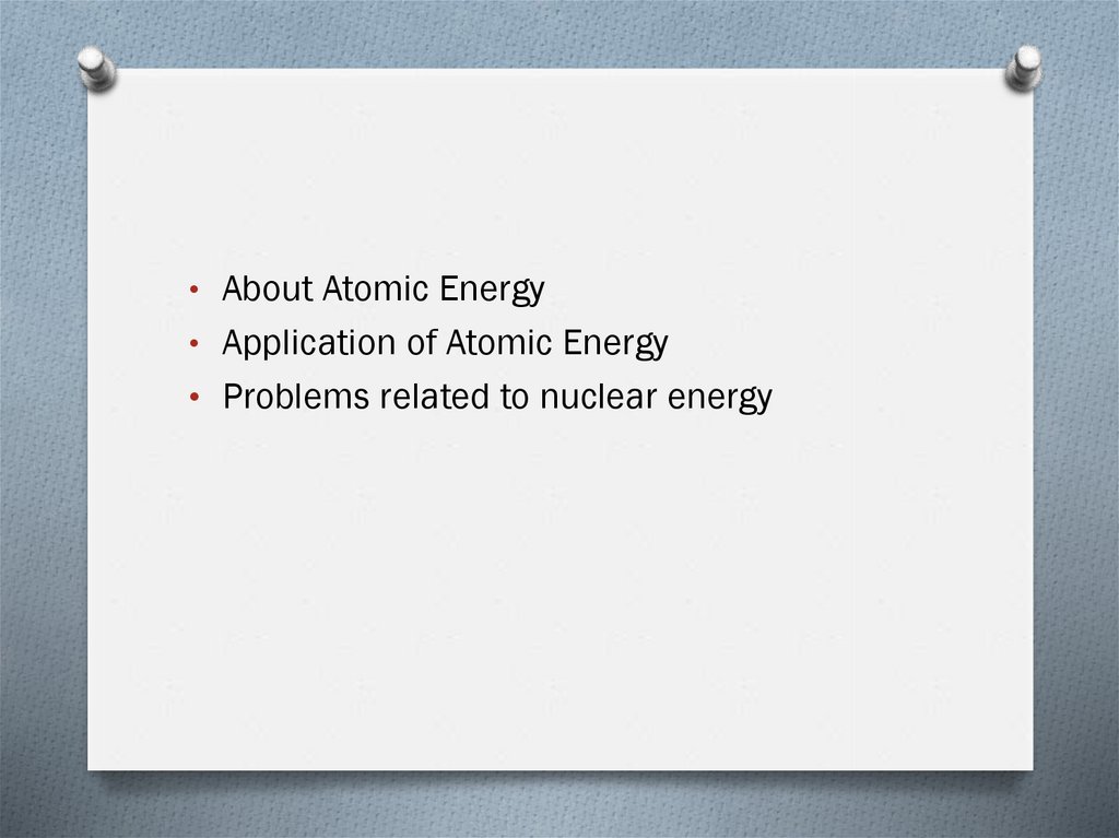 Spontaneous radioactive decay6. Application of Atomic Energy