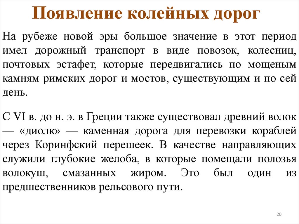 Появление колейных дорогНа рубеже новой эры большое значение в этот период
