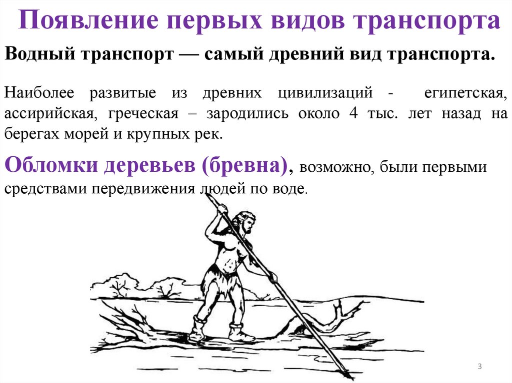 Появление первых видов транспортаВодный транспорт — самый древний вид транспорта.