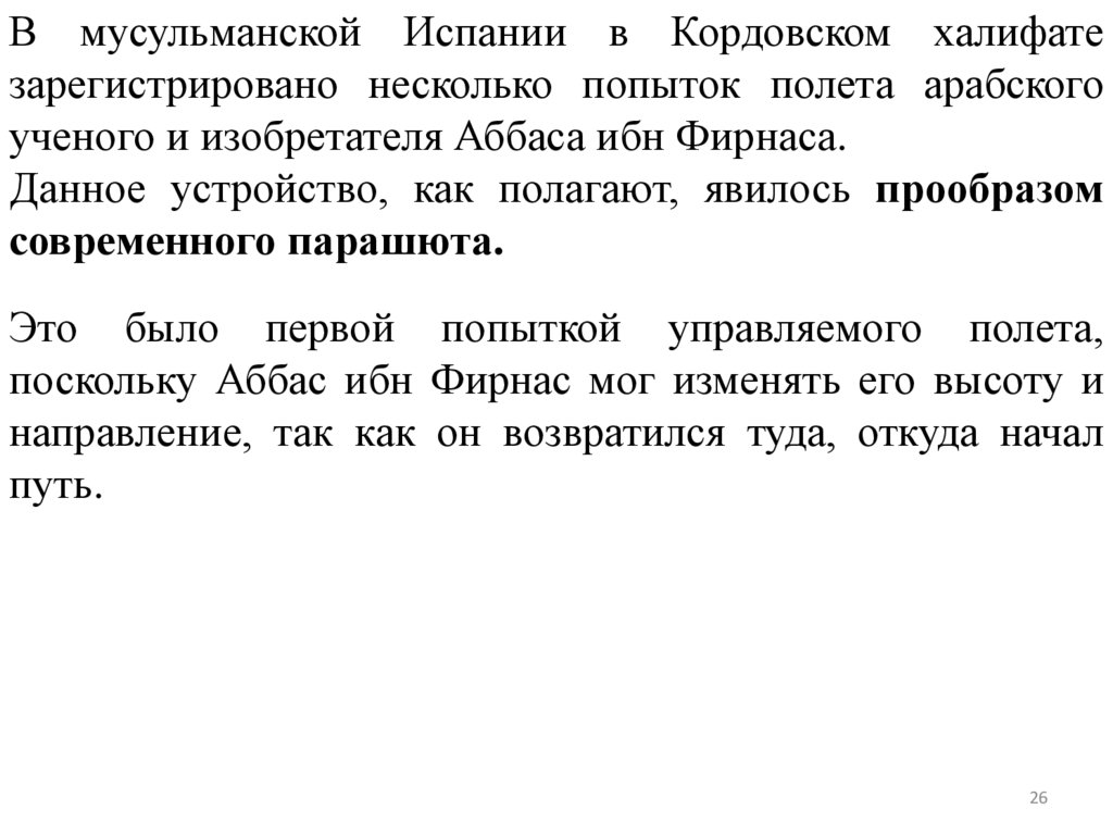 ученого и изобретателя Аббаса ибн Фирнаса.